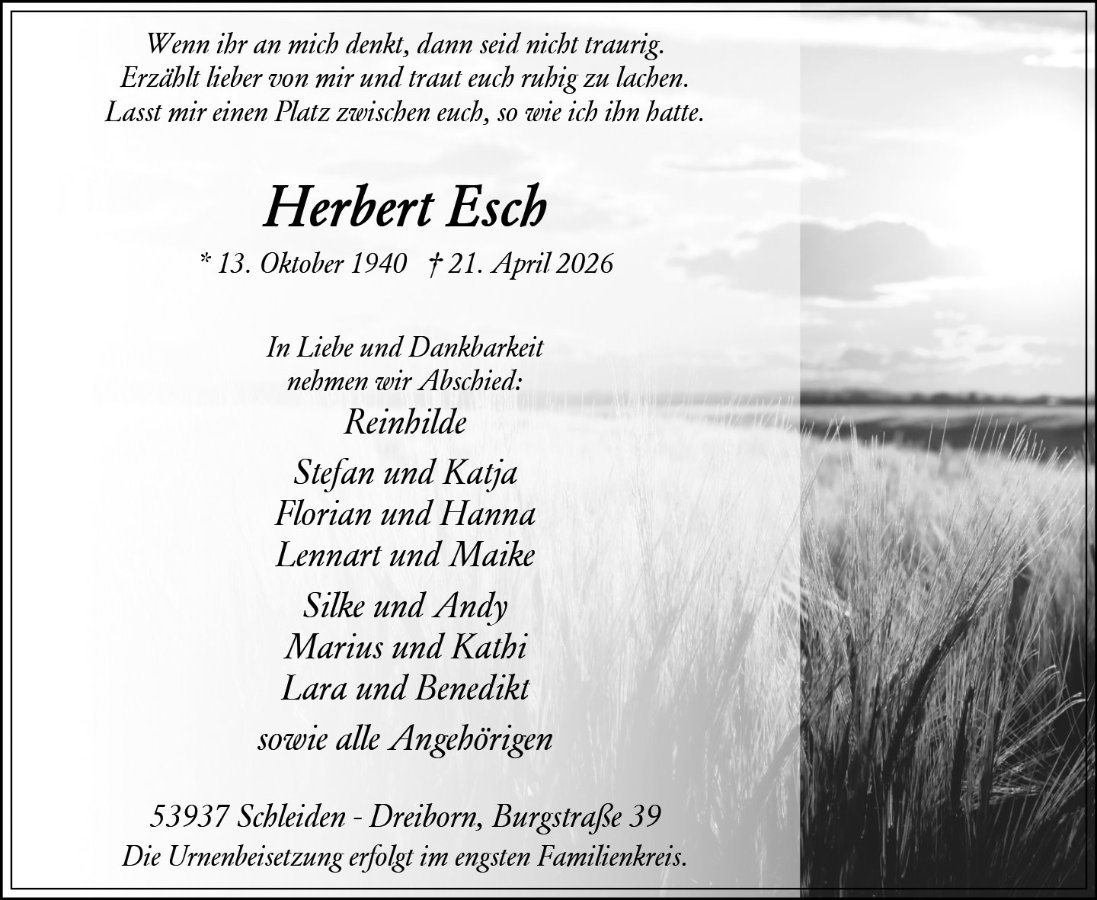 in diesen Tagen fühlen wir mit Ihnen und wünschen Ihnen von Herzen, dass Sie aus den glücklichen Erinnerungen Kraft schöpfen, um positiv in die Zukunft zu gehen. Diese Gedenkseite möge Ihnen dabei helfen, Ihre Trauer zu teilen und das Andenken gemeinsam wachzuhalten.