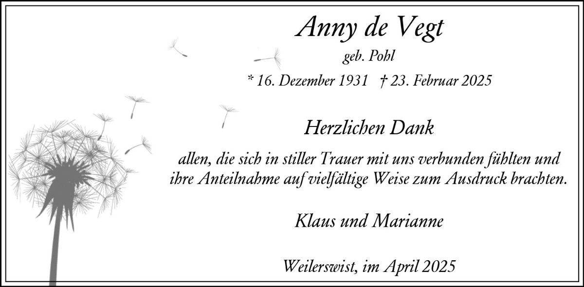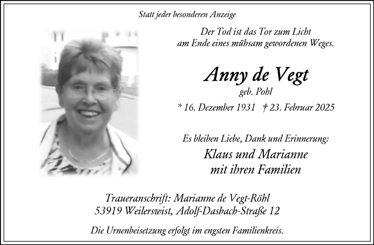 Anny de Vegt geb. Pohl