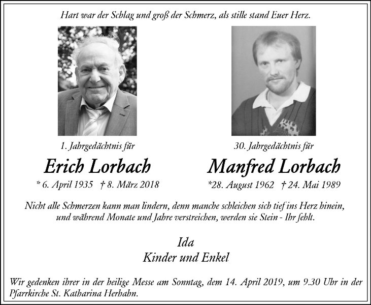 Erich Lorbachgestorben am 8. März 2018