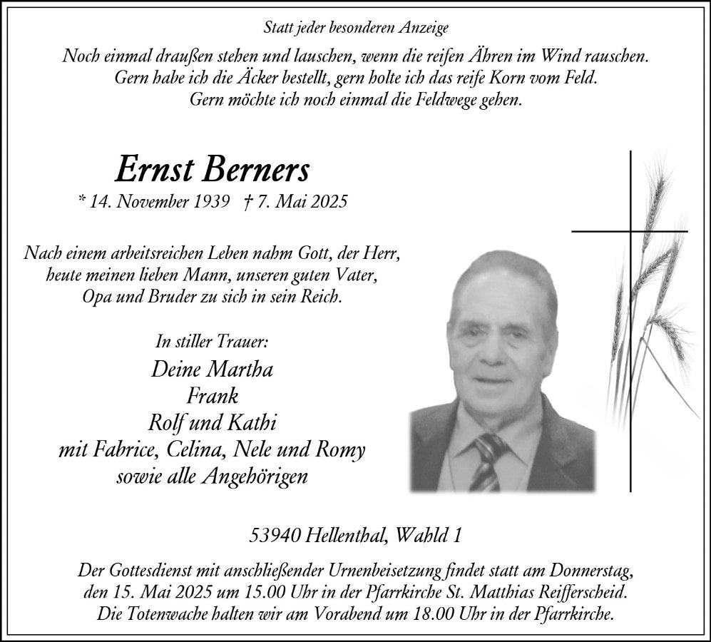 Ernst Bernersgestorben am 7. Mai 2025