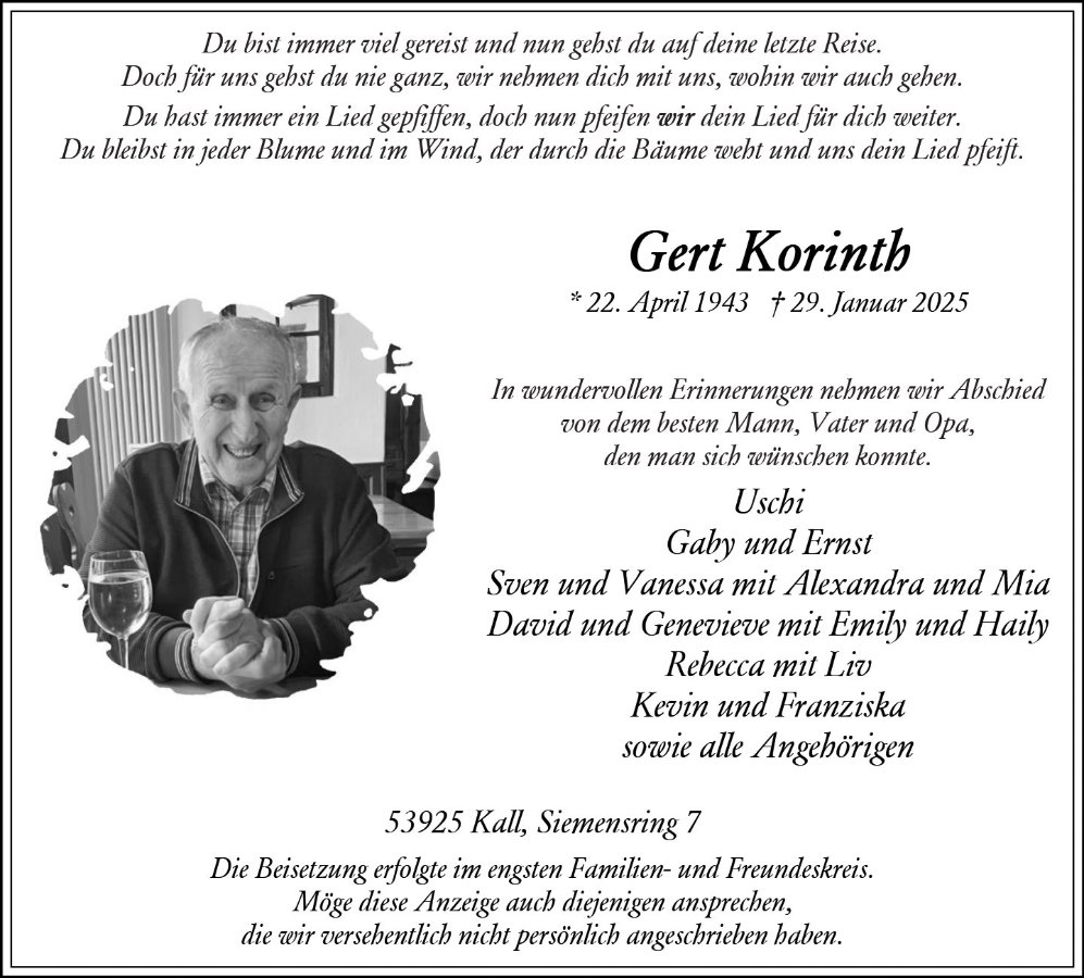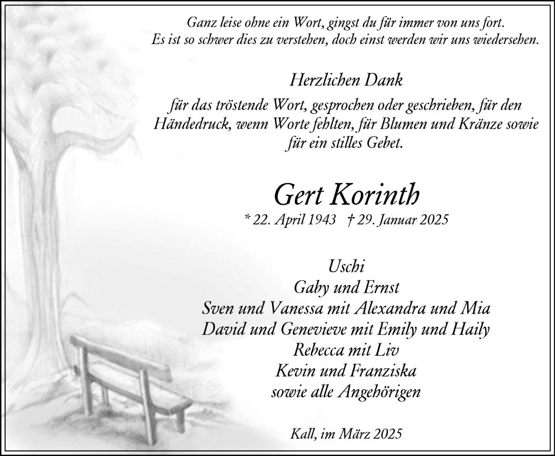 Gert Korinthgestorben am 29. Januar 2025