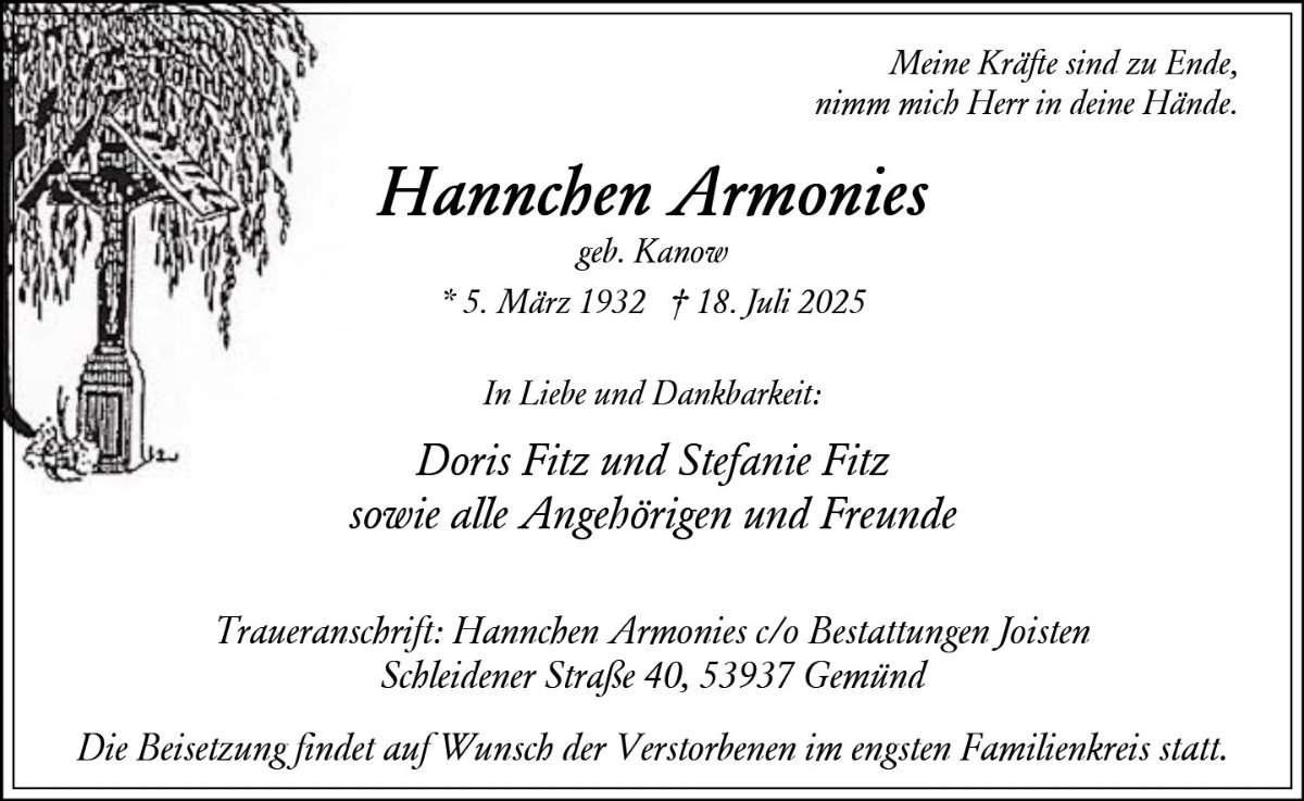 Hannchen Armoniesgestorben am 18. Juli 2025
