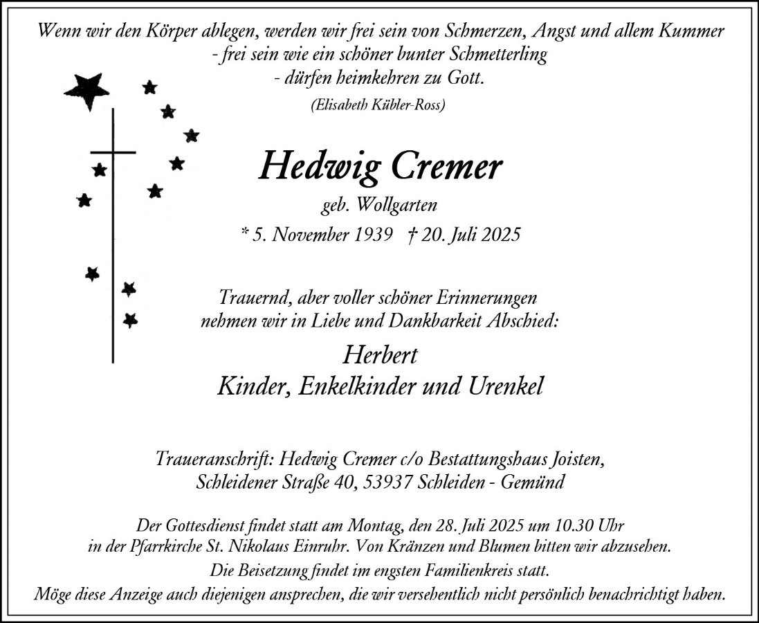 Hedwig Cremergestorben am 20. Juli 2025