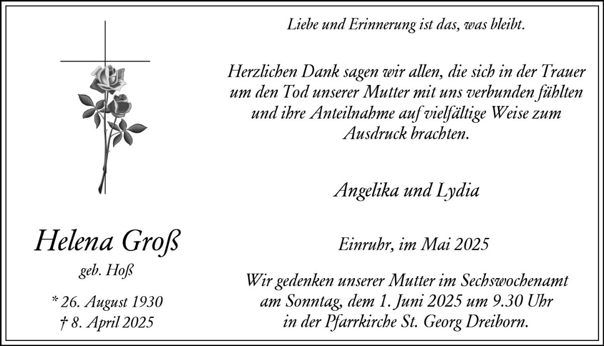 wir wünschen Ihnen von Herzen viel Kraft, dass Sie Menschen um sich haben, die Ihnen in dieser schweren Zeit beistehen und Halt geben. Zusätzlich können Sie auf dieser Gedenkseite Erinnerungen teilen und so das Andenken gemeinsam wachhalten.