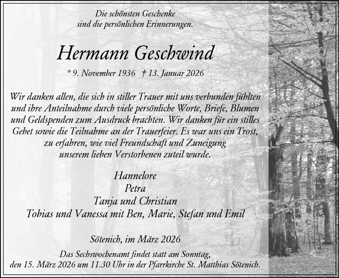 Hermann Geschwindgestorben am 13. Januar 2026