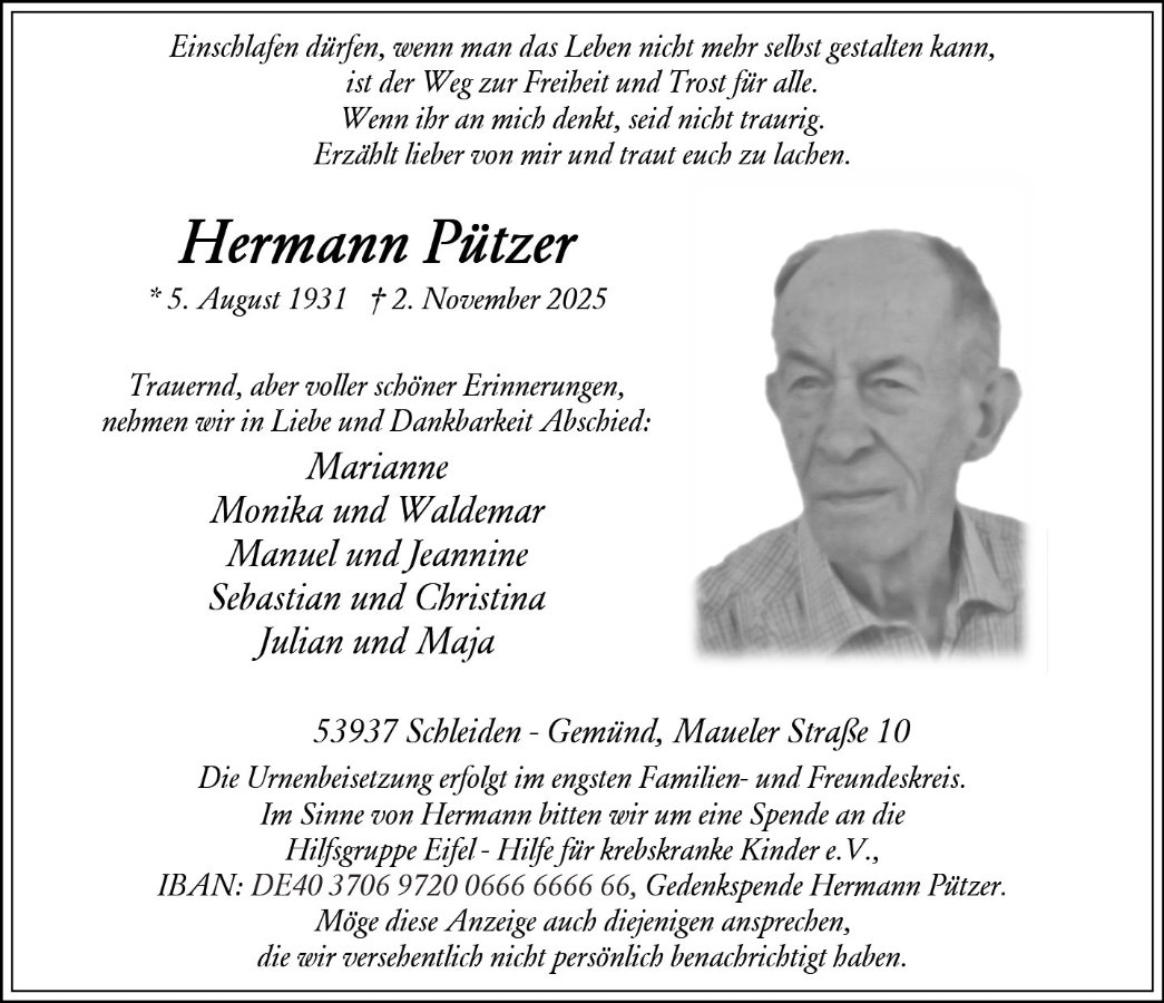 wir wünschen Ihnen für die kommende Zeit viel Kraft und dass es Ihnen gelingt, dankbar auf die positiven Erinnerungen zurückzublicken. Diese Gedenkseite möge Ihnen dabei helfen, Ihre Trauer zu teilen und das Andenken gemeinsam wachzuhalten.