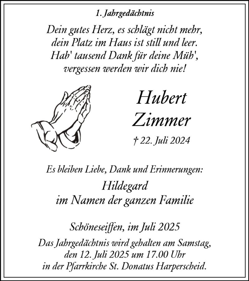 Hubert Zimmergestorben am 22. Juli 2024