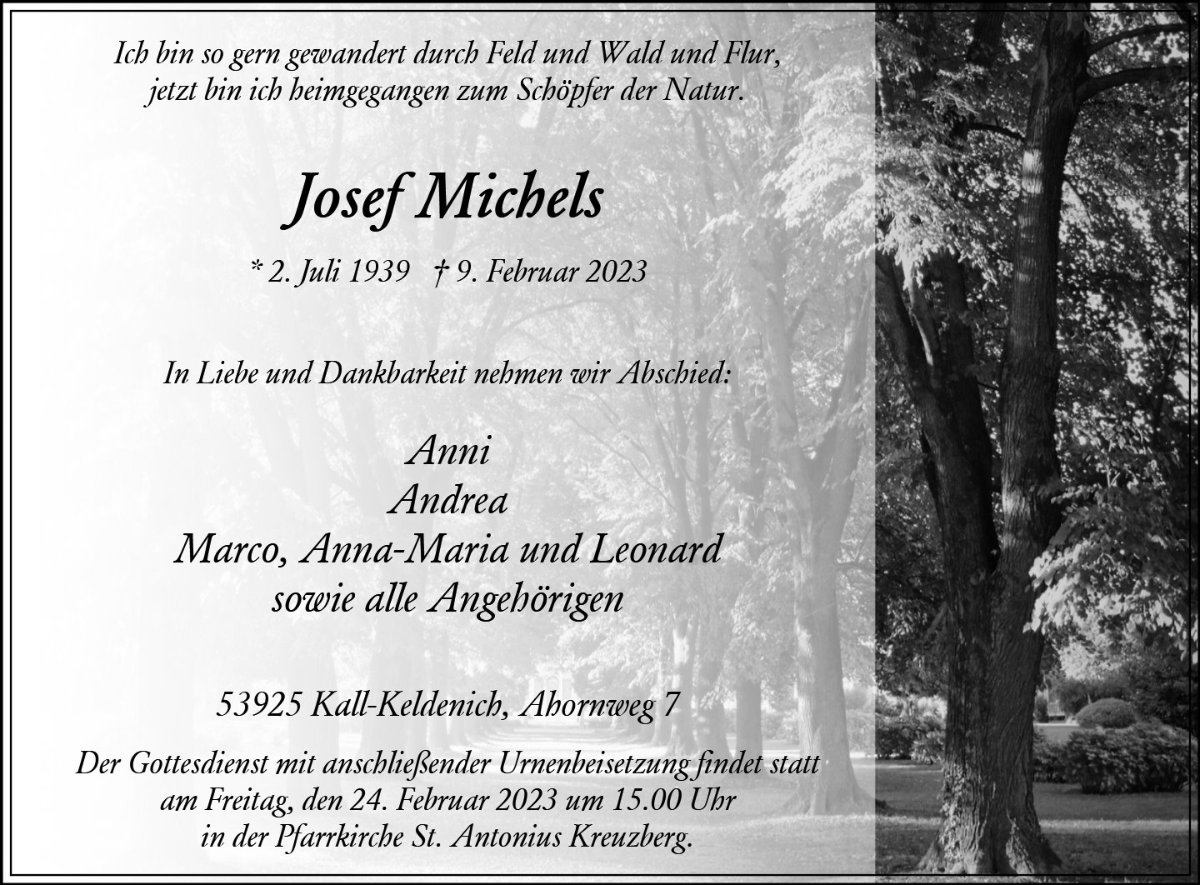 Josef Michelsgestorben am 9. Februar 2023