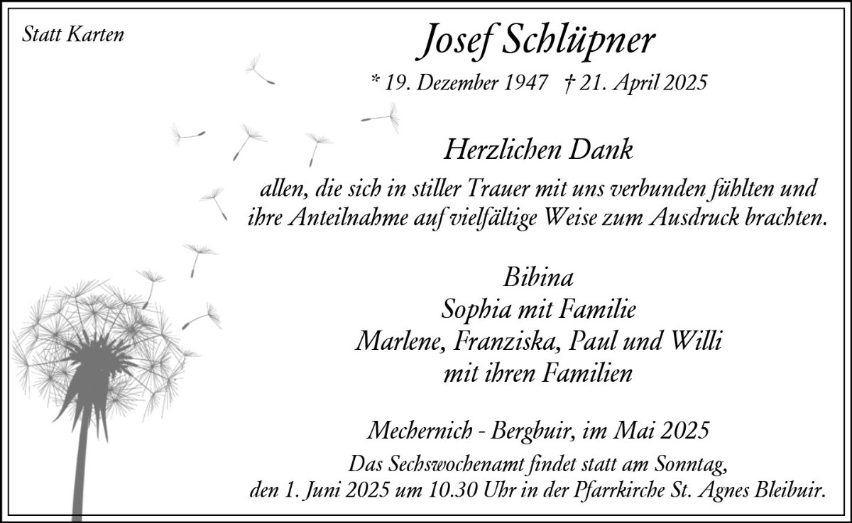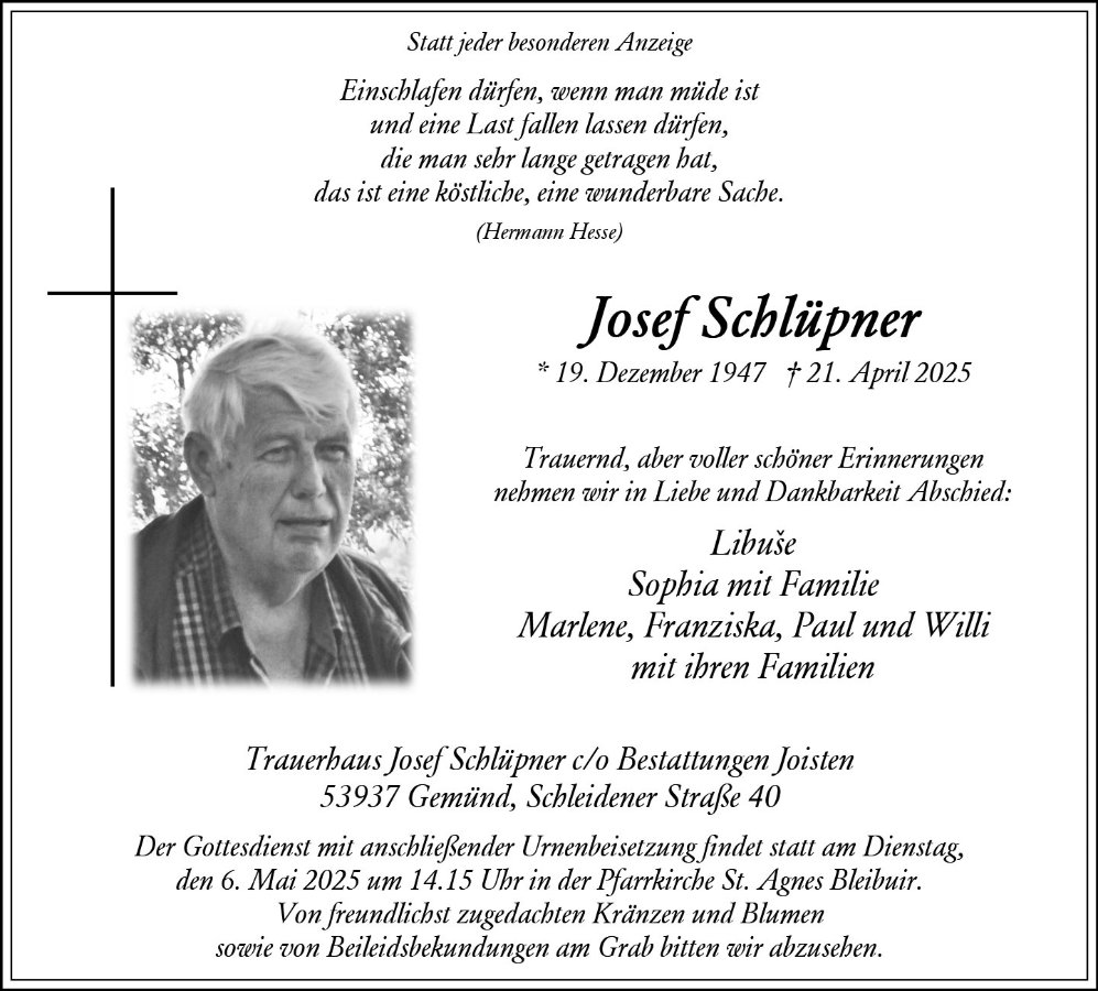 Josef Schlüpnergestorben am 21. April 2025