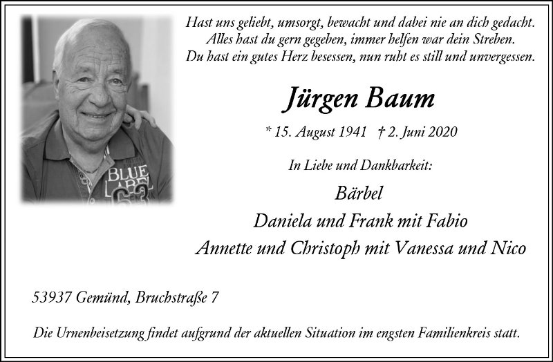 Jürgen Baumgestorben am 2. Juni 2020