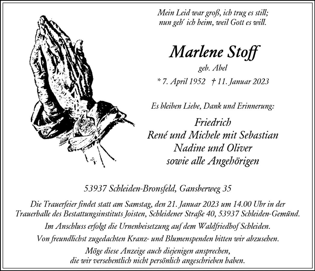 Marlene Stoffgestorben am 11. Januar 2023