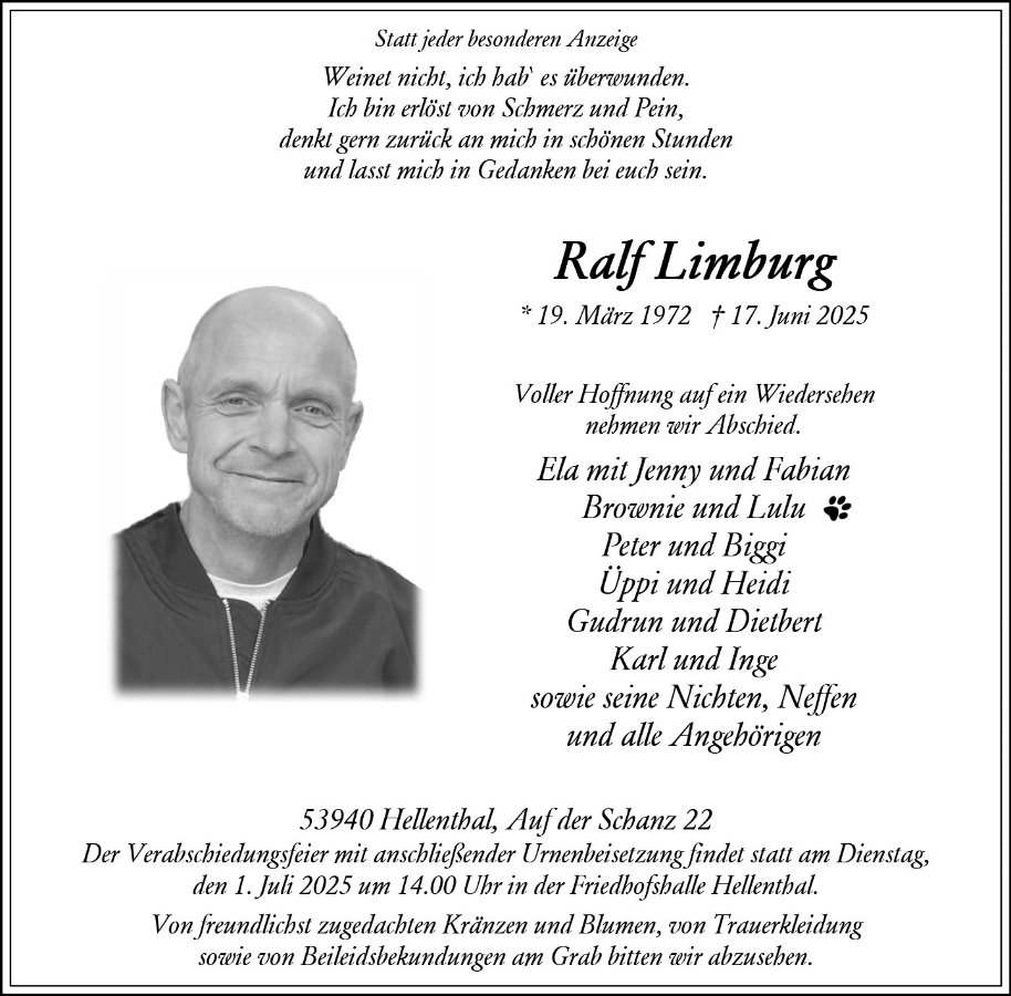 Ralf Limburggestorben am 17. Juni 2025