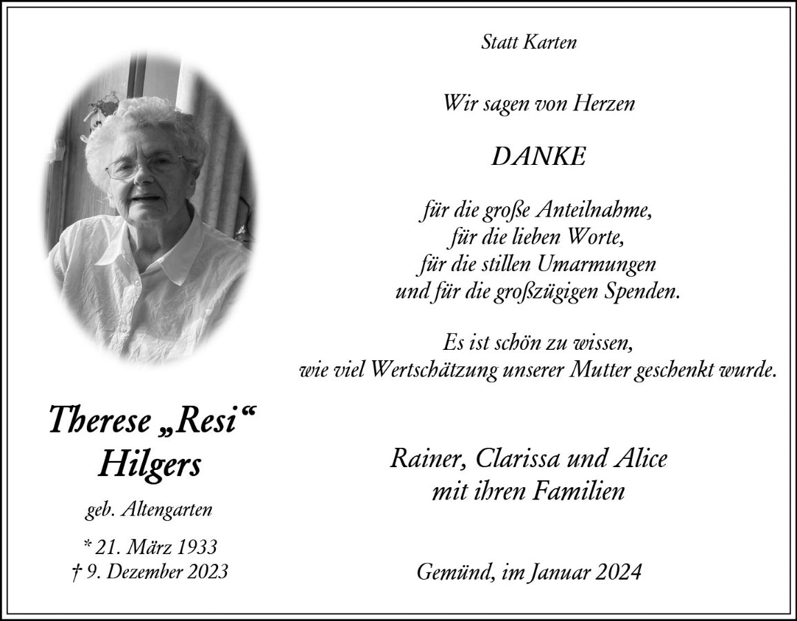 Resi Hilgersgestorben am 9. Dezember 2023