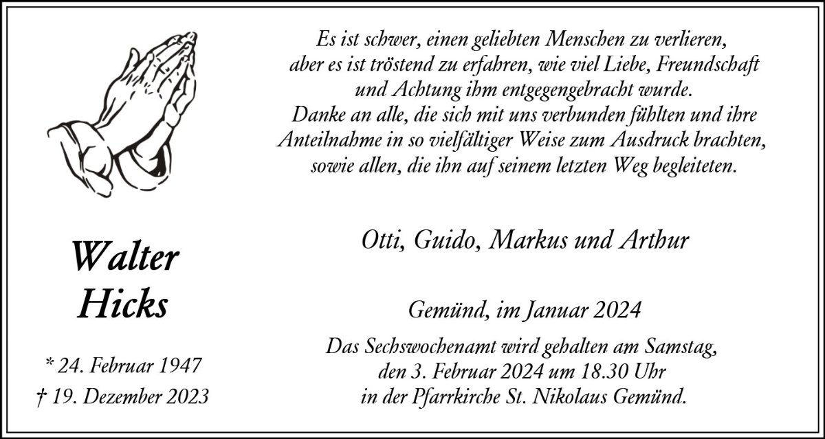 Walter Hicksgestorben am 19. Dezember 2023