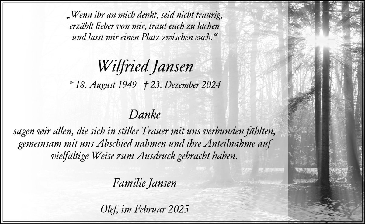 wir wünschen Ihnen von Herzen viel Kraft, dass Sie Menschen um sich haben, die Ihnen in dieser schweren Zeit beistehen und Halt geben. Zusätzlich können Sie auf dieser Gedenkseite Erinnerungen teilen und so das Andenken gemeinsam wachhalten.